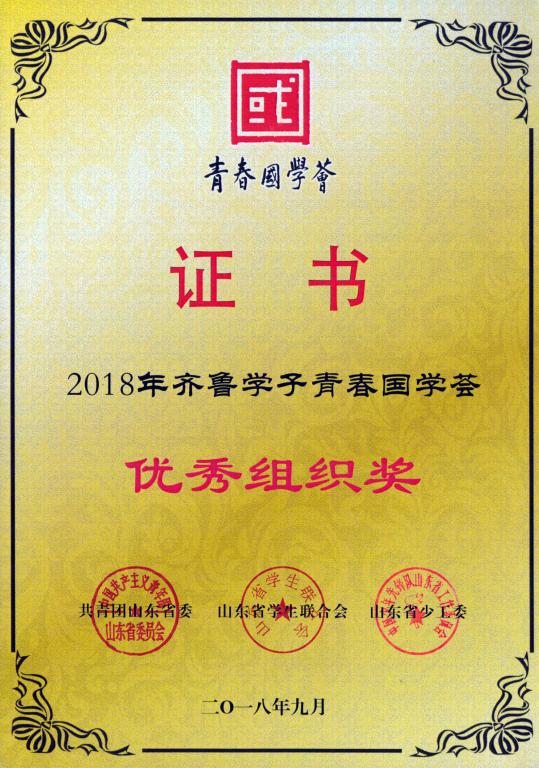 第五届山东省青少年“国学达人挑战赛”自今年7月正式启动以来,省内各高校学生通过学校组织参赛、地方组织参赛等方式参与比赛。最终,共有97名省内高校学生进入了大学组决赛。经过激烈的竞争角逐,霍文博以优秀成绩进入大学组决赛,并通过抢答、场景演练等环节对国学知识的考察,最终凭借扎实的国学功底和稳定的发挥晋级十二强,荣获二等奖的好成绩,同时李宝平以优胜成绩获得优秀奖。