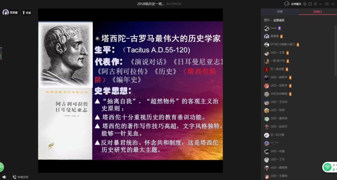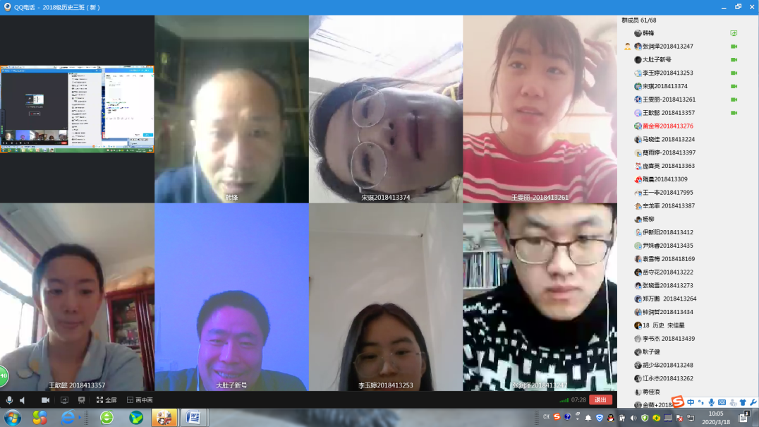 同时,学校教学督导李绍强教授在线检查了张文华博士为2018级历史1班讲授的《西方史学史》和张田生副教授为2019级体育公师班讲授的《中国古代史2》课程,并与教学副院长针对在线教学质量保障问题进行了交流沟通。