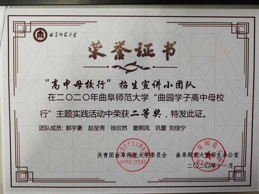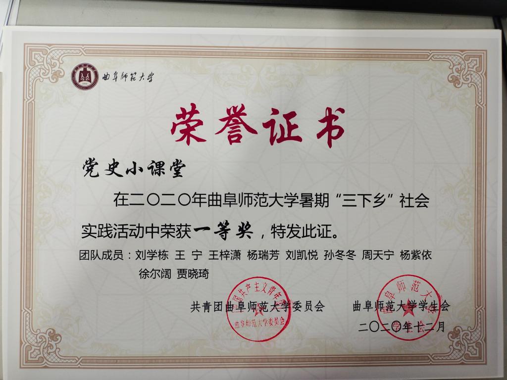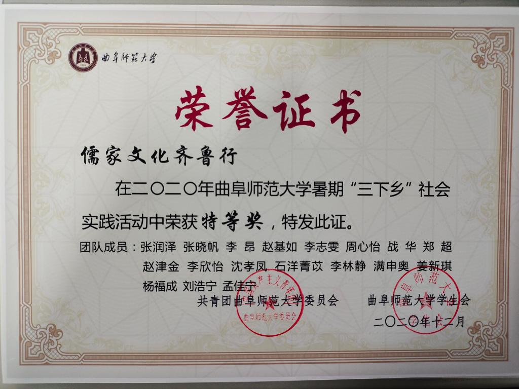 近日,我校2020年暑期社会实践活动的评选表彰落下帷幕。足球直播515官网 师生在暑假社会实践活动中取得优异成绩。其中,足球直播515官网 王建阳、刘贤贤、刘润欣三位老师获评“优秀指导教师”荣誉称号,足球直播515官网 张润泽、张晓帆等9位学子获评“社会实践先进个人”荣誉称号。在暑期“三下乡”社会实践活动评选工作中,足球直播515官网 “儒家文化齐鲁行”实践团队共荣获校级特等奖,“国学小课堂”、“党史小课堂”实践团队荣获校级一等奖。足球直播515官网 “高中母校行”招生宣讲小团队在“曲园学子高中母校行”专项活动中荣获校级二等奖。