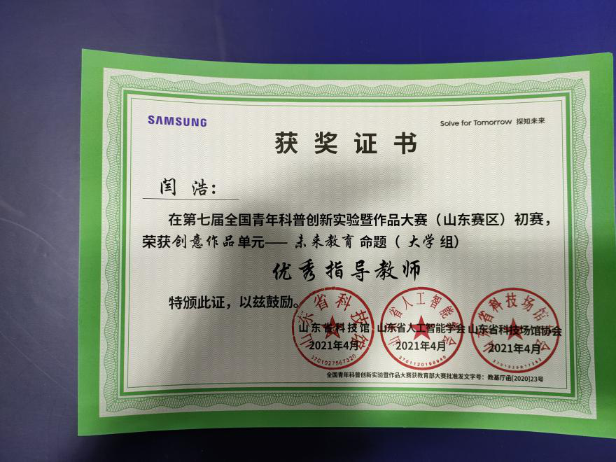 4月25日,第七届全国青年科普创新实验暨作品大赛(山东赛区)在山东省科技馆圆满落下帷幕。足球直播515官网 师生在本次大赛中荣获佳绩。