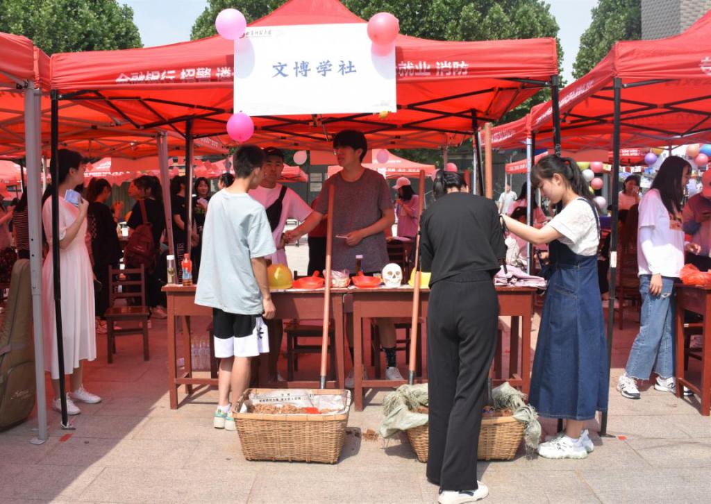 为展示社团别样风采,激发社团活力,丰富课余生活,5月30日,由学校团委主办的社团文化艺术节在大学生活动中心广场前举办。足球直播515官网 洙泗学社、文博学社、辩论社、拾光文化创意社积极参加,各显神通。