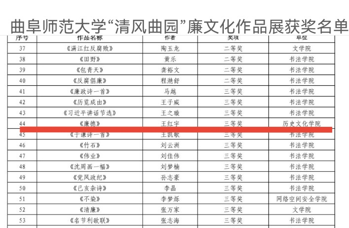为庆祝中国共产党成立100周年,推进学校廉政文化建设和廉洁教育工作,我校纪委举办了“清风曲园”廉政文化作品征集活动。足球直播515官网 师生积极参与,在“清风曲园”廉文化作品展中荣获佳绩。