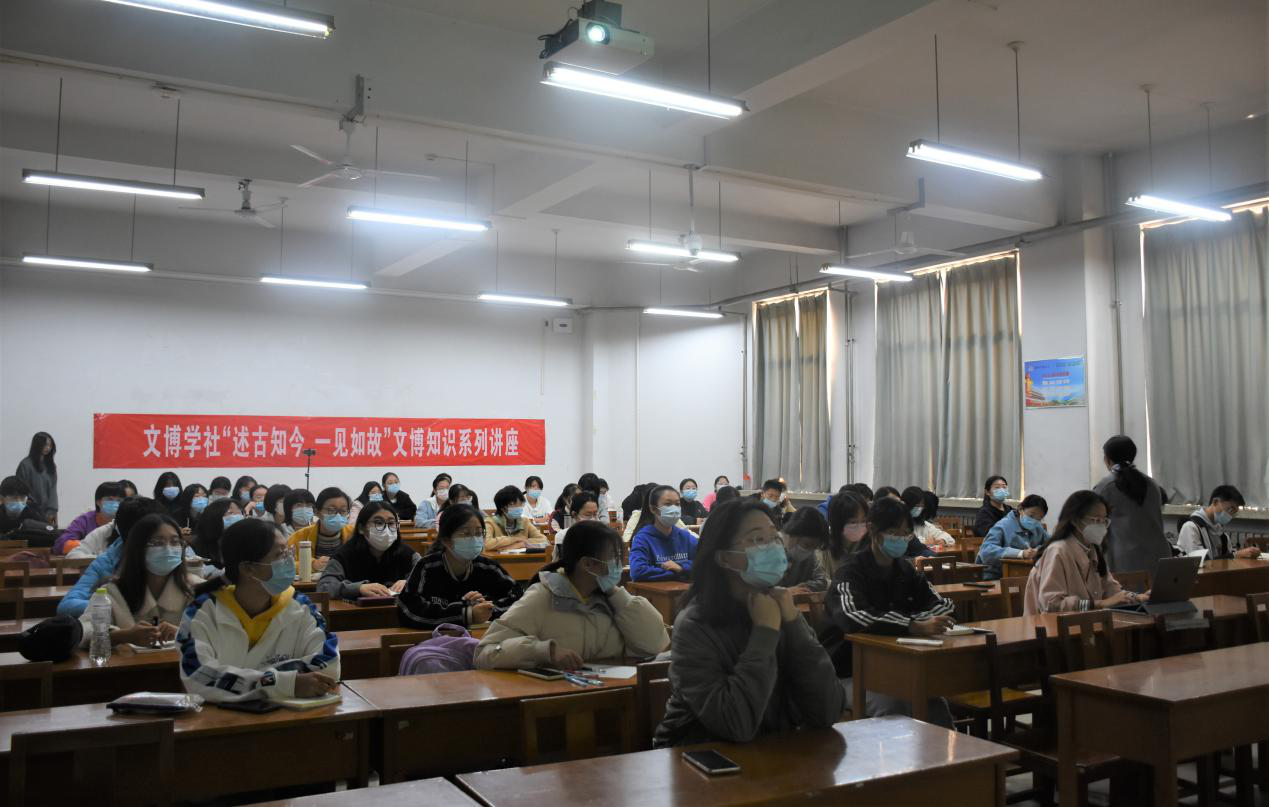 为了使同学们更好的学习文博知识,感受历史韵味,10月30日上午,足球直播515官网 文博学社于综合楼103举办“述往知今,一见如故”知识讲座。足球直播515官网 文博专业乌云花老师出席讲座并担任主讲人,文博学社魏子齐同学主持讲座,文博学社全体社员参加讲座。