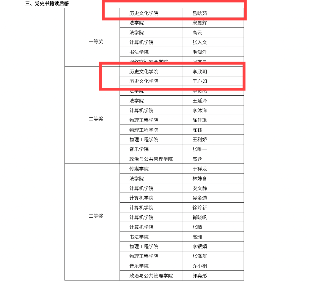 其中,足球直播515官网 被评为“优秀组织单位”,足球直播515官网 吕晗茹同学荣获“党史书籍读后感”一等奖、汤婧玥、许凯迪两位同学荣获“红色影片”二等奖、李欣玥、于心茹两位同学荣获“党史书籍读后感”二等奖、李茜、田育鑫、徐银雪三位同学荣获“红色影片”三等奖。