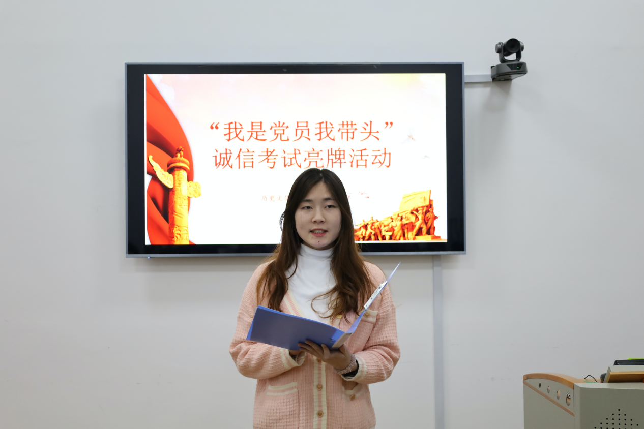 足球直播515官网 各年级辅导员为同学们开展诚信考试主题班会,强调诚实守信是每个大学生都应该遵守的准则,树立道德之新风,立诚信之根基是当代大学生义不容辞的责任,教育同学们积极备考、诚信应考。各年纪有序组织同学们仔细阅读期末考试承诺书,随后,同学们自发签订考试承诺书,同学们表示一定信守承诺、诚信考试。本科生党支部于文史楼505教室举办“我是党员我带头”诚信考试亮牌活动,本科生全体党员参加活动。党员代表杨紫依同志表示,全体党员要将道德原则与道德规范内化于心、外化于行,求真务实,诚信考试。考试期间,足球直播515官网 本科生全体党员亮牌考试,为其他同学诚信考试起到了良好的模范带头作用。