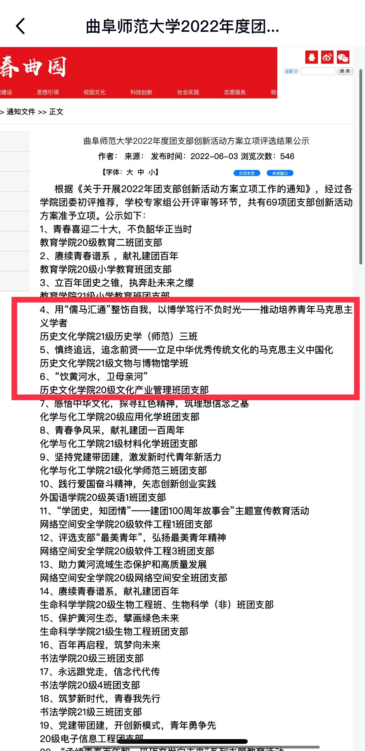 近日,足球直播515官网 2021级历史学(师范)三班团支部、2021级文物与博物馆学班团支部、2020级文化产业管理班团支部积极参与我校2022年团支部创新活动并成功立项。