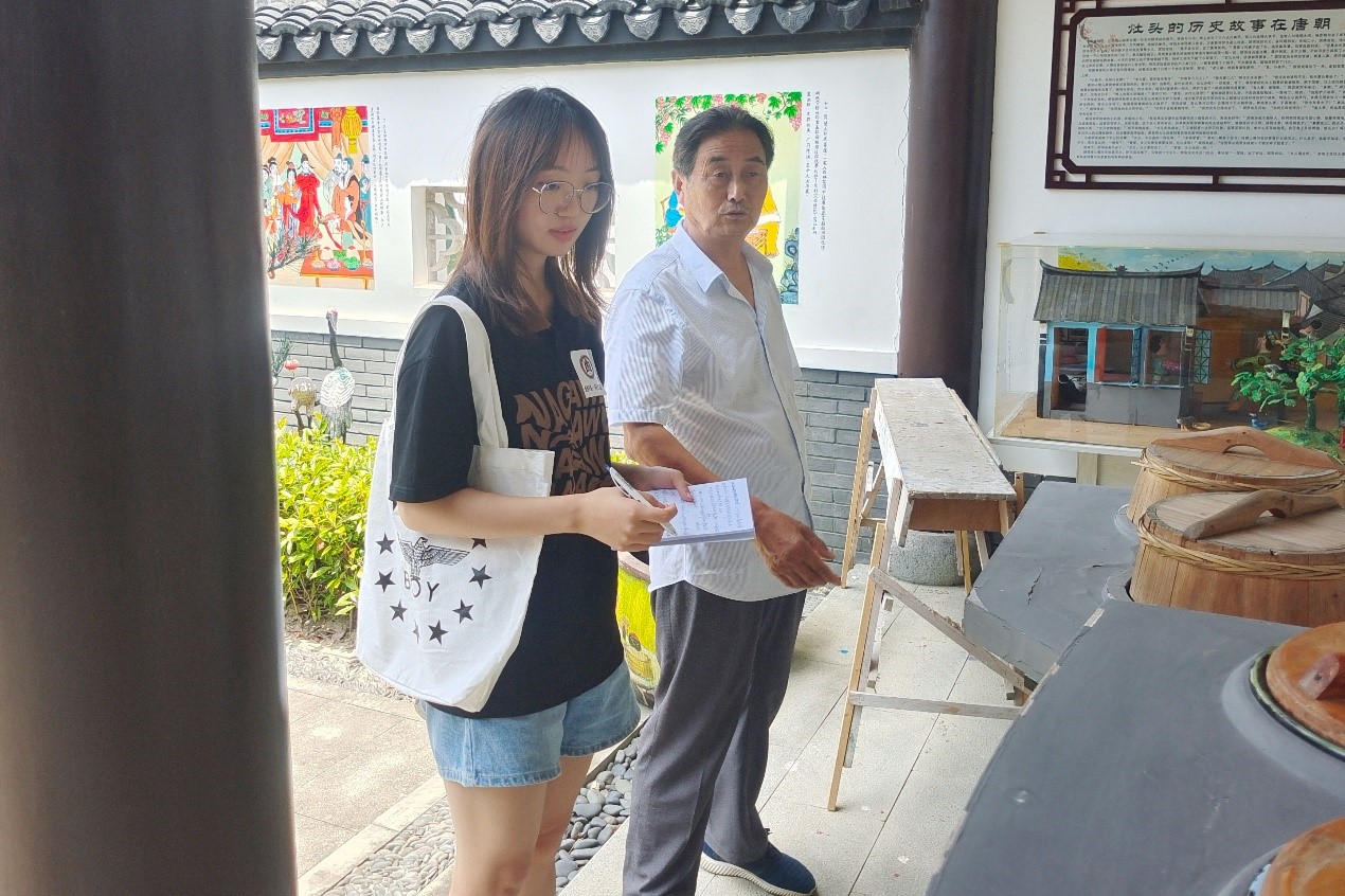 为响应国家“十四五”时期推进社会主义文化强国建设的号召,助力非物质文化遗产的传承,促进乡村文化产业振兴,7月10日,足球直播515官网 “儒韵齐风——匠心故里”社会实践团队走进浙江省嘉兴市秀洲区古塘村,团队成员陆陈燕参加本次实践。