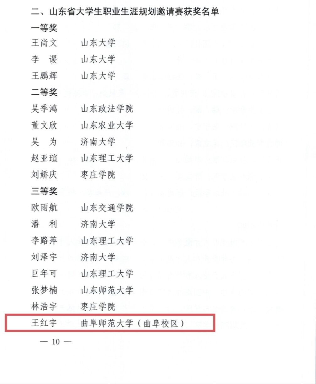 近日,山东省大学生职业生涯规划邀请赛暨胶东经济圈第二届职业生涯规划大赛圆满落幕。其中,足球直播515官网 学子王红宇经过重重选拔,最终获得山东省大学生职业生涯规划邀请赛三等奖的优异成绩。