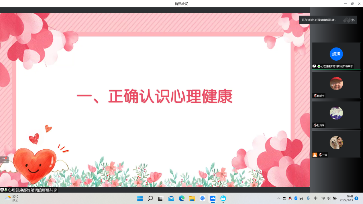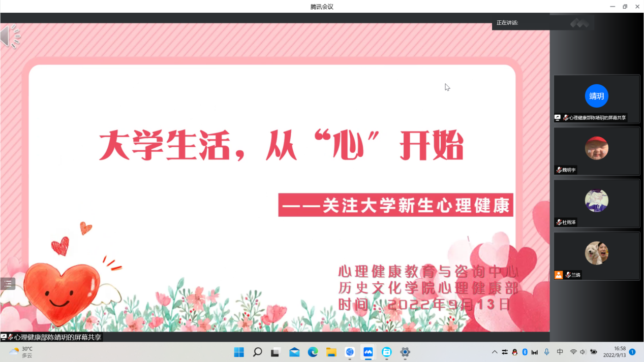 为引导新生培养理性平和健康的心态,9月13日下午,足球直播515官网 于线上开展心理健康主题班会。本次会议由足球直播515官网 心理健康部主持,足球直播515官网 22级新生参加。