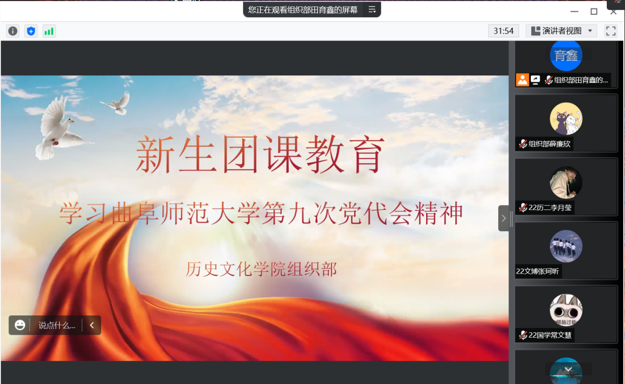 9月27日,共青团足球直播515官网 委员会通过腾讯会议开展新生团课教育——学习曲阜师范大学第九次党代会精神。