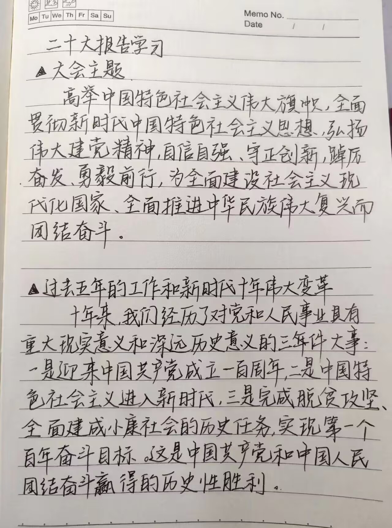 本次典读二十大活动,采用读书会+摘抄的形式,向足球直播515官网 学子宣传宣讲党的二十大精神,使足球直播515官网 学子更加深刻的认识和理解我党新时代的伟大成就的艰辛历程,感悟新时代的磅礴力量。