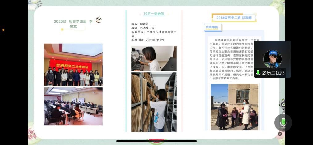 会上,主讲人依托“青鸟计划”微信平台,为足球直播515官网 学子具体讲解了“青鸟计划”微信平台注册流程以及相关实习要求。会议还邀请到足球直播515官网 “青鸟计划”实习实践工作优秀榜样张秀芸同学和高原同学,以自身案例为基础向足球直播515官网 学子讲解了历史学相关不同领域的实习实践工作经验。
