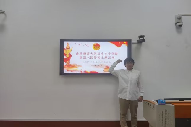 在本次活动中,首先由王景鹤同学带领团员们庄严宣誓,高唱团歌,与团旗合影。随后,王瑾同学上台分享自己与共青团的故事,为新团员颁发团徽、团员证。最后,王瑾同学对新团员们表示衷心的祝贺和勉励,并指出新团员要学习团的章程,传承团的精神,坚定拥护中国共产党领导。