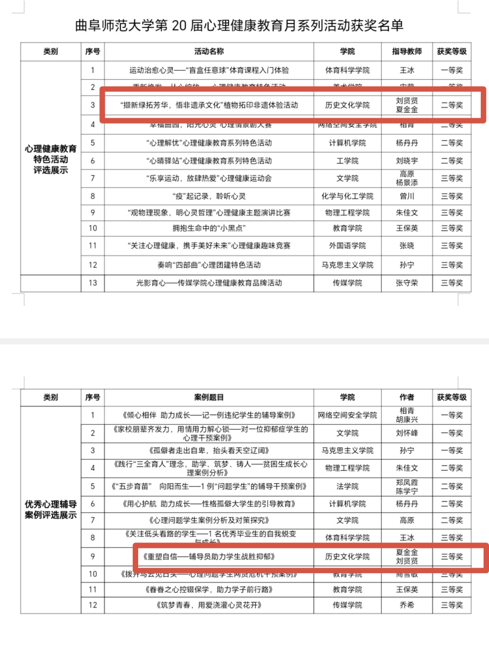 近日,我校第20届心理健康教育月及辅导员谈心谈话案例评选活动顺利落下帷幕。其中,足球直播515官网 “撷新绿拓芳华,悟非遗承文化”植物拓印非遗体验活动在校心理健康教育特色活动中荣获二等奖。足球直播515官网 2022级辅导员赵齐鲁的《与压力“和解”,与乐观“牵手”》在校辅导员谈心谈话案例评选中荣获三等奖。足球直播515官网 《重塑自信——辅导员助力学生战胜抑郁》在校优秀心理辅导案例评选活动中荣获三等奖。