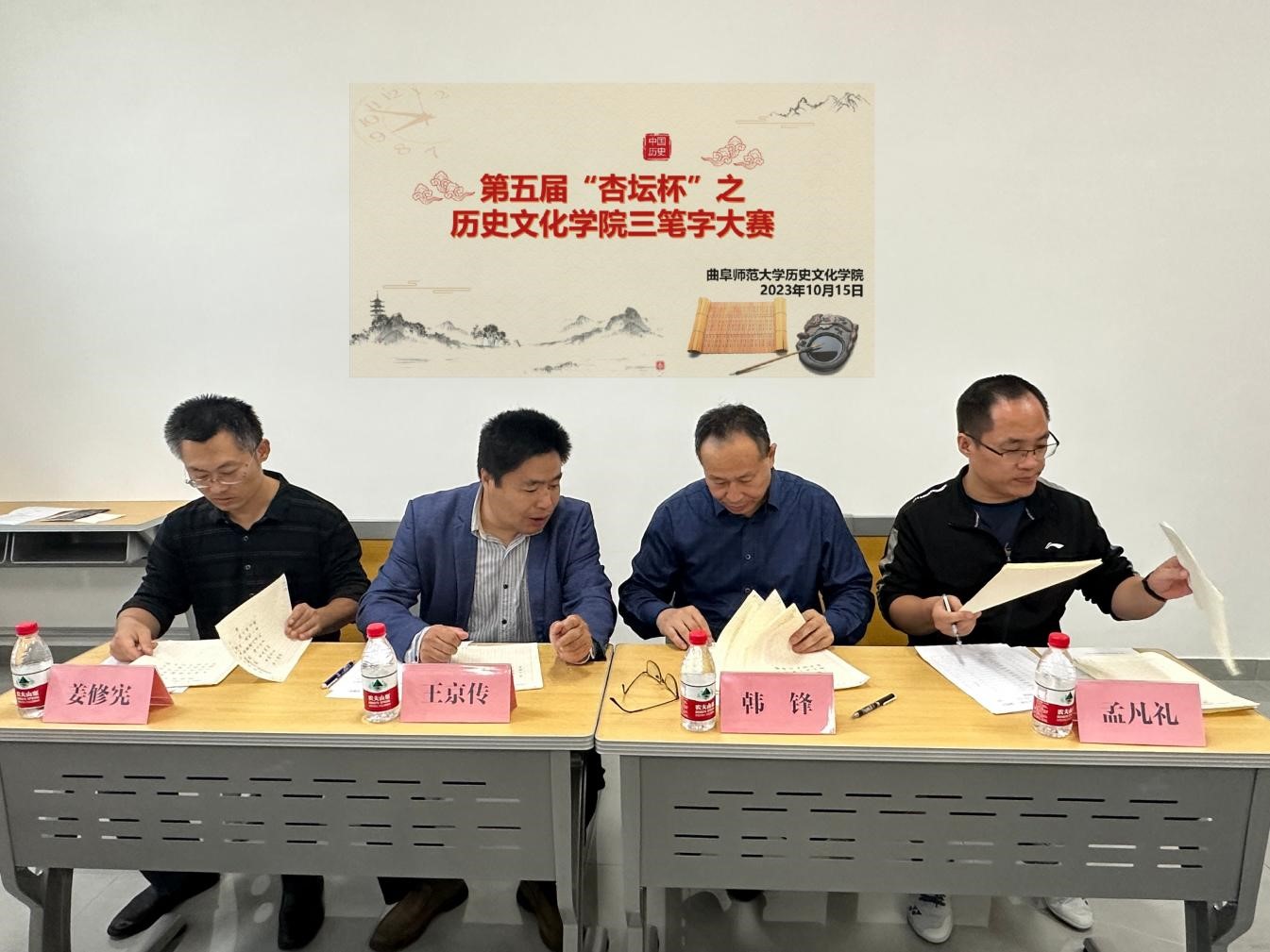 为树立足球直播515官网 学生汉字书写规范意识,提高学生的综合素养,增强足球直播515官网 师范生竞争优势,10月15日下午,足球直播515官网 于孔子书院B101、104教室举办第五届“杏坛杯”三笔字大赛。足球直播515官网 王京传、孟凡礼、韩锋、姜修宪四位老师出席比赛并担任评委。