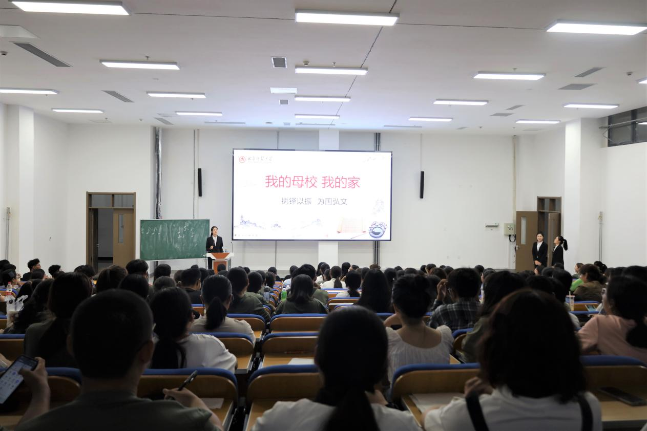 为了帮助新同学们树立“爱校荣校”意识,牢记“学而不厌,诲人不倦”的校训,培育新生脚踏实地,勤恳学习的优良作风。9月15日晚,足球直播515官网 在致知楼B202教室成功举办“我的母校 我的家”爱校荣校教育宣讲会。本次宣讲会邀请到我校校史讲解团为新生讲解,足球直播515官网 新生辅导员石璐老师、夏金金老师以及2023级全体新生参加了本次活动。
