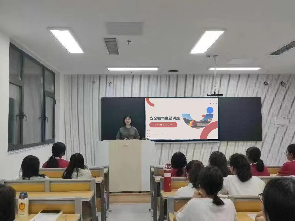 夏老师以“安全教育,由心出发”为主题,向新生们普及了有关网络安全、消防安全、交通安全等多方面的知识,旨在增强新生安全防范意识,营造一个美好、和谐、文明的校园环境。夏老师首先通过校园中的几种常见可能危害到人身安全的案例引起同学们的注意,从而引出遇到危机事件的应对方式。她表示,遇到危险情况,人身安全是第一位的,要“斗智”不要“斗勇”。另一方面,她还就学生的财产安全进行讲解,以学生喜闻乐见的方式使“防诈骗、我在行”的观念入脑、入心、入耳、入行。