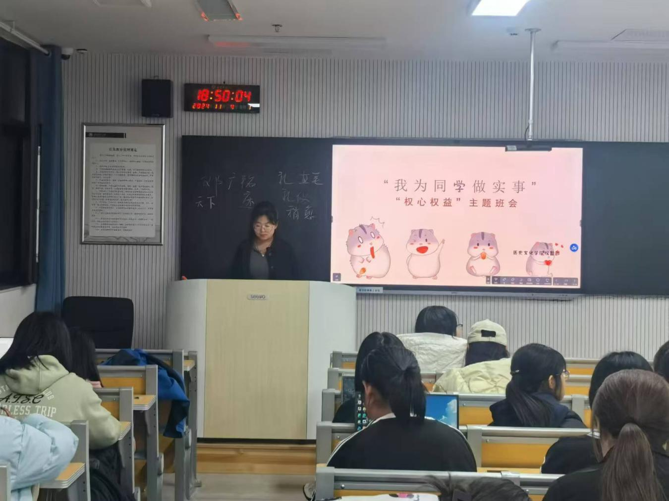 为进一步贯彻“我为同学做实事”的理念,用实际行动服务同学,促进学生更好的发展,9月26日至9月28日,足球直播515官网 各年级各班晚自习开展“权心权益”主题班会。