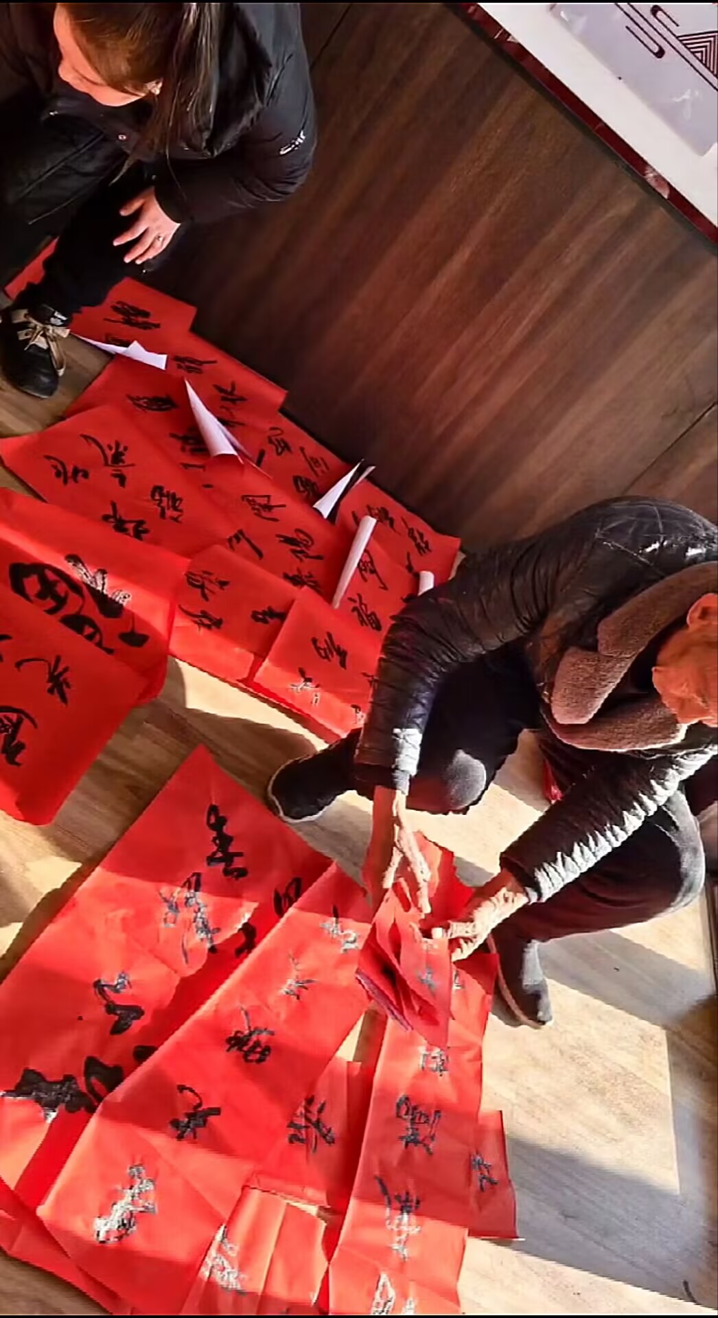 文化节筹备阶段,实践队员们和工作人员紧密合作,积极投身于准备冬日文化活动当中,向专业的文化传承人询问注意事项和文化活动本身的文化底蕴。从场地选址到物资准备,事无巨细,全力为即将参与到此次文化活动节的参与者们打造一场文化盛宴。文化节当天早上六点半,实践队员与工作人员来到现场,迎着凌冽寒风,悬挂起喜庆的红灯笼、张贴寓意吉祥的春联……分工明确,齐心协力,情暖寒冬。