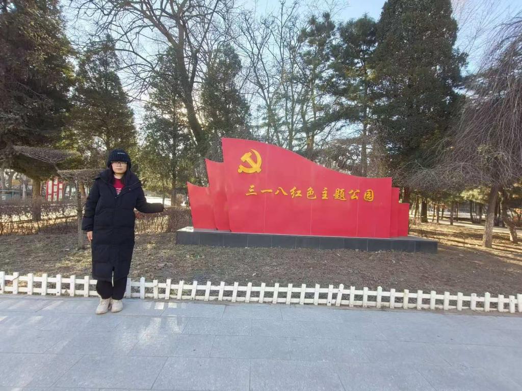 实践队为更加真切地感受历史,决定前往阜新市三一八公园。走进三一八公园,实践队员感受到扑面而来的历史厚重感,门口有假山环绕,还有一块醒目的石刻,再往里走就看到了庄重严肃的英雄纪念碑,碑上浮雕生动刻画着人民解放军解放阜新时英勇无畏、浴血奋战的战斗场面,背面是1988年3月8日阜新市人民政府为纪念革命烈士而所刻的烈士纪念碑文,看着这些,仿佛能听见当年战场上的枪炮声,能看到战士们冲锋陷阵的身影,实践队成员在纪念碑前整齐列队,神色凝重,庄严肃立,向英勇牺牲的烈士们默哀致敬,表达着对先烈们的无限敬仰与缅怀之情 。实践队向前出发,步入红色文化展示区域,看到了精心设置的星火燎原、解放阜新、阜新精神三大板块展板,一幅幅珍贵的历史图片、一段段详实的文字介绍,都在诉说着过去的故事。实践队了解到从1945年“八一五”光复后八路军接收阜新,到1948年3月18日阜新最终全境解放的历程,从烽火特支领导的抗日斗争,抗日烽火中建立诸多特别党支部(五龙“特殊工人”党小组、太平第六“特殊工人”大队党支部等),到中共中央东北工委直属阜新地下党支部等发生在阜新地区的历史事件。实践队继续前进,进入了一片树林,在草地上立着几个大字“永远跟党走”,这不仅体现出在抗战时期革命人士的坚定决心,也突出了阜新人民紧跟党的步伐的爱国情怀。
