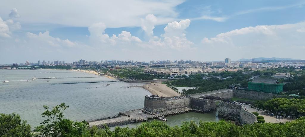 走出纪念馆,实践队员们登上毗邻的蓬莱阁。凭栏远眺,黄海与渤海在此分界,海天一色间,仿佛仍能听见古战场的号角。实践队在这里开展了“英雄故事我来讲”活动,队员们向游客们讲述戚继光的事迹,发放精心制作的历史知识手册。“原来蓬莱阁不仅有八仙过海的传说,更有这样荡气回肠的英雄史诗!”来自江苏的游客张先生听完讲解后深受触动,带着孩子在“爱国主义教育打卡点”合影留念。实践队员们还与当地文旅部门工作人员交流,了解到蓬莱阁正通过数字技术复原戚家军抗倭场景,让年轻游客更直观地感受历史。“传承不是简单的复述,而是要用当代人能接受的方式,让英雄精神活起来。”