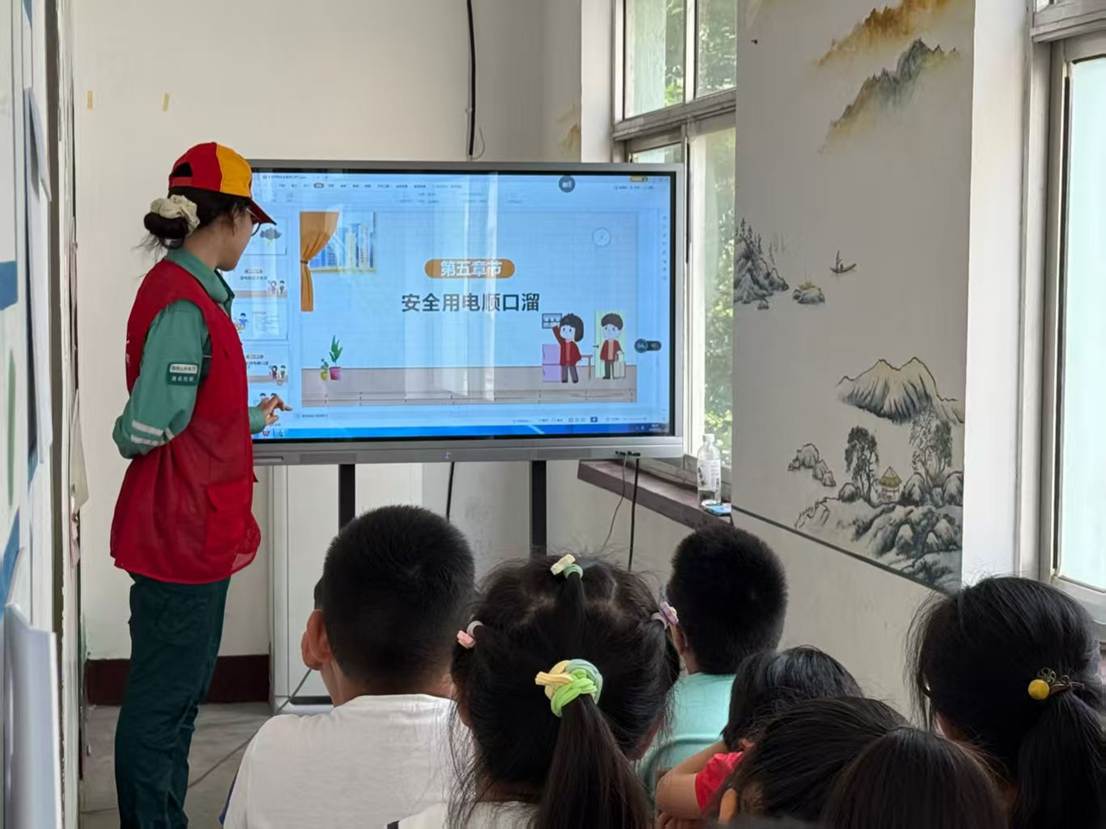 活动伊始,实践队队员走上讲台,以一段生动有趣的用电安全小视频拉开了宣讲的序幕。视频中,可爱的卡通形象和惊险刺激的用电事故场景,瞬间吸引了孩子们的注意力。随后,队员们用通俗易懂的语言,结合日常生活中的实际案例,向孩子们讲解了安全用电的基本知识,如如何正确使用电器、如何避免触电事故等。队员们还特别强调了夏季用电的注意事项,提醒孩子们在享受清凉的同时,也要注意用电安全。