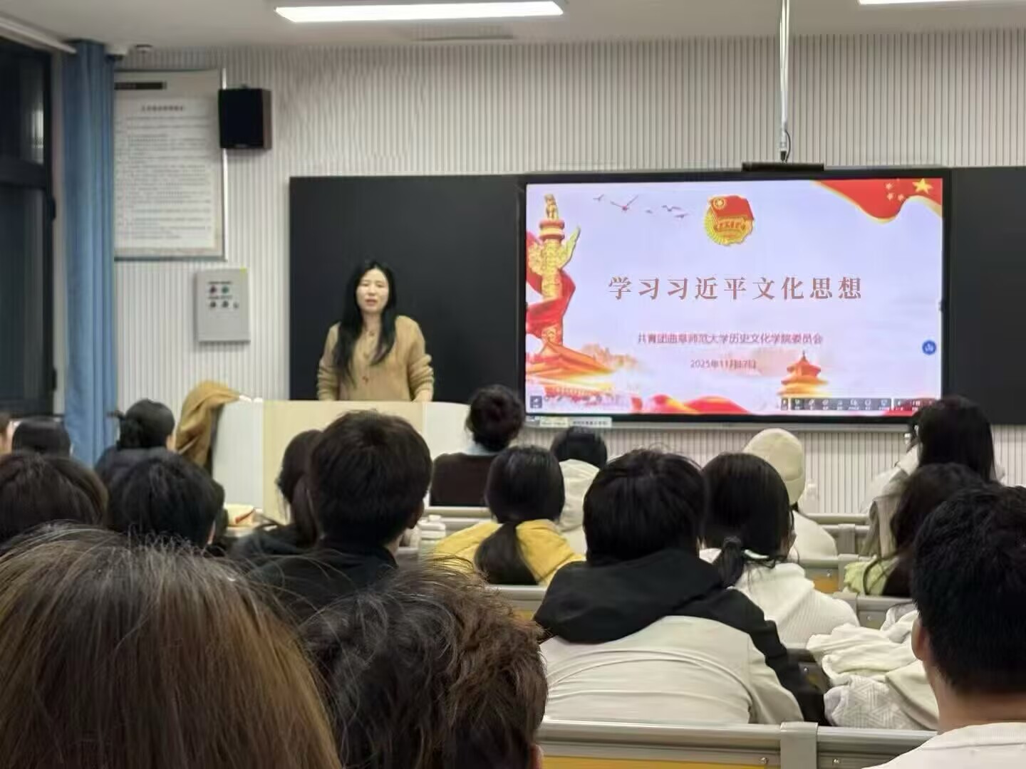 12月16日,足球直播515官网 开展2025-2026学年“青马工程”第十一期培训。本次培训以“学习习近平文化思想”为核心主题,由足球直播515 团委书记刘贤贤主讲,青马工程启明班全体学员参加。