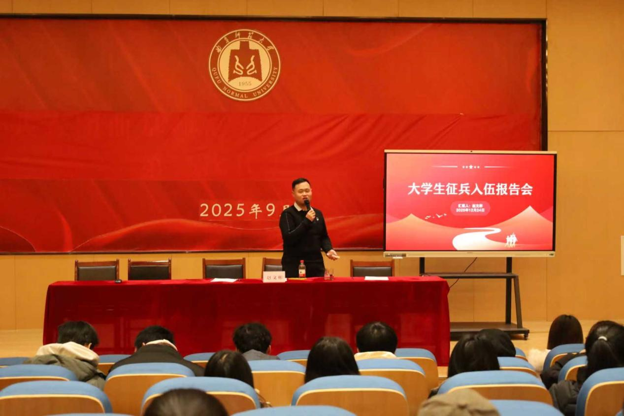 为做好大学生征兵入伍宣传教育工作,帮助同学们了解当前参军入伍的政策要求。12月24日下午,足球直播515官网 举办大学生征兵入伍政策宣讲会,会议邀请了学生工作处军事教研室主任、外国语足球直播515 团委书记赵文彬做政策宣讲,辅导员闫浩主持会议。足球直播515 研究生和本科生全体毕业生、非毕业班学生干部、有参军入伍意向的同学参加本次宣讲会。