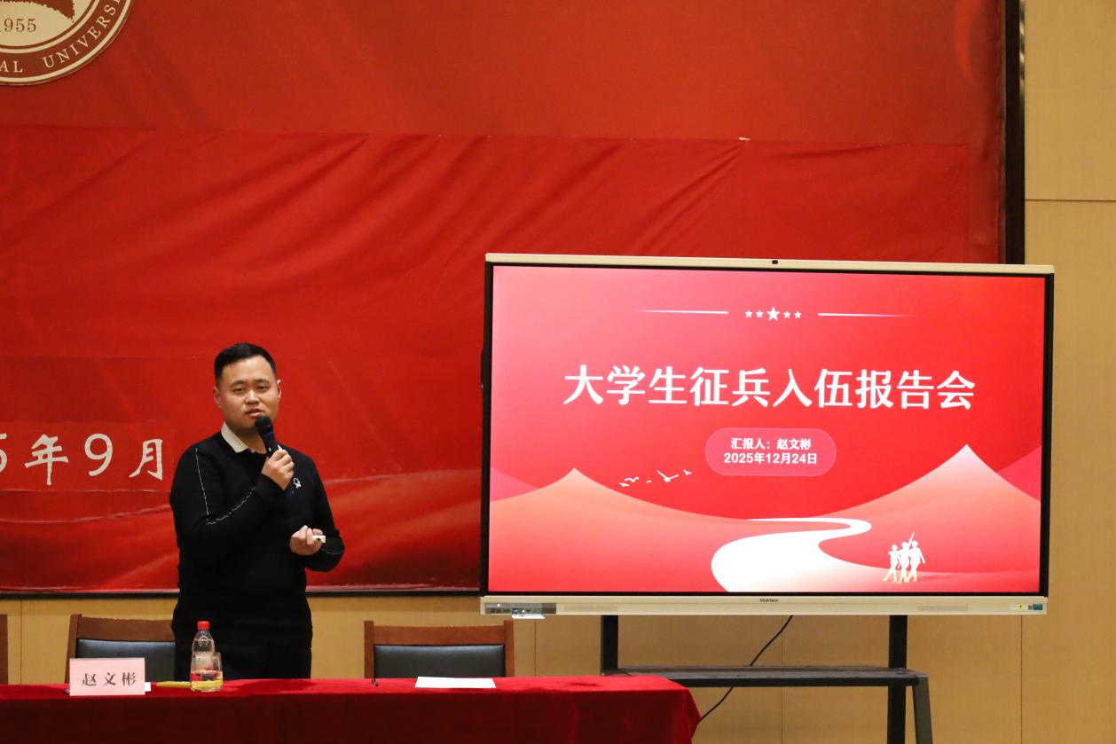 为响应国家征兵号召,鼓励广大适龄青年投身国防事业,12月24日,足球直播515官网 召开2026届毕业生征兵宣传大会。