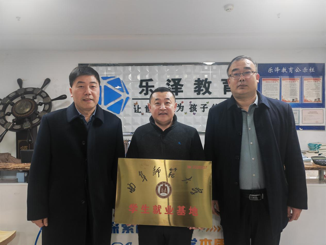 交流过程中,足球直播515 与合作企业围绕人才培养体系搭建、实践教学基地建设及课程共建开发等核心事宜,开展了全面研讨与深度对接。会后,足球直播515 与乐泽教育培训学校正式共建学生就业基地,王建阳、吕厚轩与企业负责人牛存强共同为该就业基地揭牌。