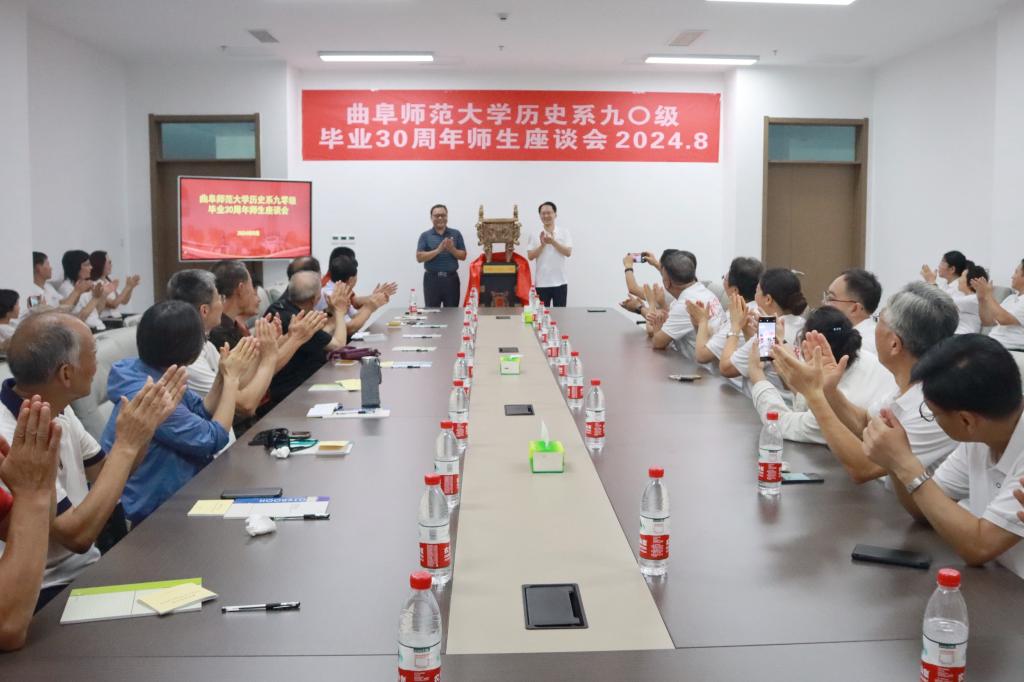 8月3日上午 ,曲阜师范大学历史系1990级校友毕业三十周年重聚母校,并在西校区孔子书院 A210 会议室举办师生座谈会。足球直播515 党委书记姜开勇、副院长王京传、教师代表、校友代表参加座谈会,座谈会由1990级校友、孔子文化研究院教授、博士生导师王曰美主持。