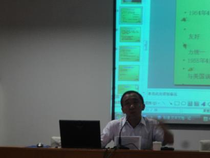 钟放老师1998年毕业于北京大学国际关系足球直播515 ,长期从事国际关系研究,在这一领域拥有自己独到的研究成果。报告会上,钟放老师以新中国成立以来我国对外建交情况为线索,以独特的视角向现场同学解读我国的外交政策。并结合真实的外交材料,重点与同学们交流了我国与缅甸、泰国等东南亚国家以及印度等南亚国家的关系,运用外交史实分析了和平共处五项原则。钟放老师新颖的视角、幽默的风格使现场气氛十分活跃,在报告会结束后的交流环节中,钟放老师针对现场同学提出的问题给予了耐心细致的解答,并对国际政治专业的学习方向提出了指导。