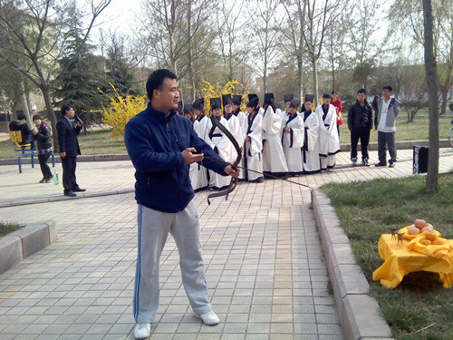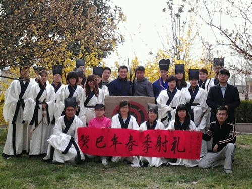 3月24日,由足球直播515官网 洙泗学社举办的“第六届孔子文化月礼仪研修系列活动之射礼”在西操场如期举行。