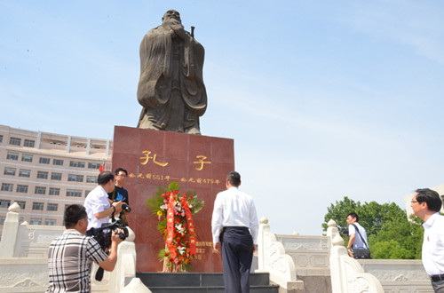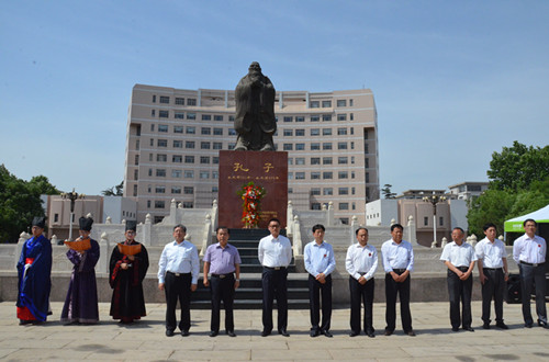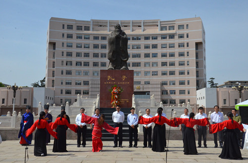 5月23日下午,山东省首家国足球直播515 在我校隆重揭牌。孔子第79代嫡长孙、中华大成至圣先师孔子协会会长、我校国足球直播515 名誉院长孔垂长先生与山东省教育厅副厅长宋承祥共同为国足球直播515 揭牌。揭牌仪式前,孔垂长先生在孔子文化广场向孔子像敬献了花篮并观看了足球直播515官网 的传统文化特色活动——“儒家经典诵读”。