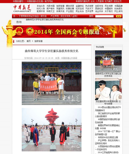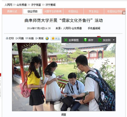 在刚刚结束的我校2014年大学生暑期“三下乡”社会实践活动中,足球直播515官网 的“儒家文化齐鲁行”社会实践活动和明德故事进企业进社区活动引起了校内外媒体的广泛关注。中国报道网、人民网等多家媒体对足球直播515官网 “儒家文化齐鲁行”社会实践活动的开展以及实践团队的情况进行了相关报道,并给予了高度评价。