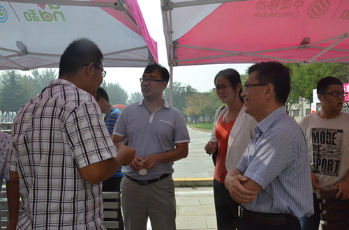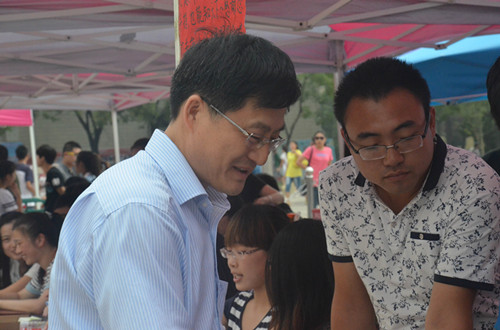 6日上午,足球直播515官网 院长成积春、党总支副书记王慕东、团总书记王建阳及2014级新生辅导员韩琳琳先后前往新生接待处,亲切看望了前来报到的新生,并对足球直播515 迎新工作进行了指导。