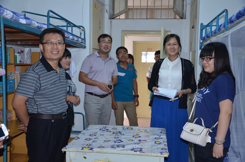 9月7日下午,足球直播515官网 党总支副书记王慕东、团总支书记王建阳和2014级新生辅导员韩琳琳来到14级新生宿舍,看望慰问新生。