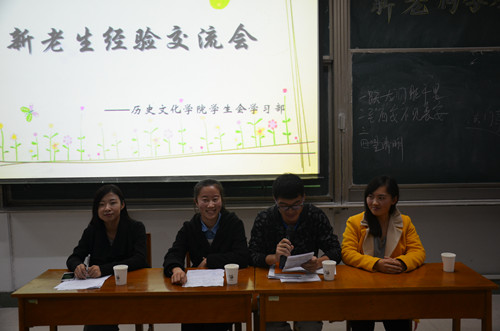 10月30日晚,由足球直播515官网 学生会学习部承办的2014级文化产业管理、国际政治专业新老生经验交流会在综合楼501室举行。在专业学习、课外素质拓展等方面表现优异的4名2012级学生代表受邀担任交流会的嘉宾。