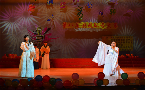 在南与北乐队献上一场精彩的开场表演之后,比赛正式开始。第一环节中,选手们对自选影片进行配音展示,在尽可能还原影视角色的基础上增添新的元素,彰显个性魅力。选手们配音精准,诠释到位,感情丰富,配合默契,赢得观众的阵阵掌声。在才艺展示环节,各组的节目形式新颖、精彩纷呈,配乐诗朗诵《独钓寒江雪》古典韵味十足,英文儿歌串烧《小星星》尽显童趣,双簧《青春正能量》笑声不断,小品《百变大咖秀》让人回味无穷。最终“四方连萌”组合凭借完美的配音和精彩的表演荣获一等奖。