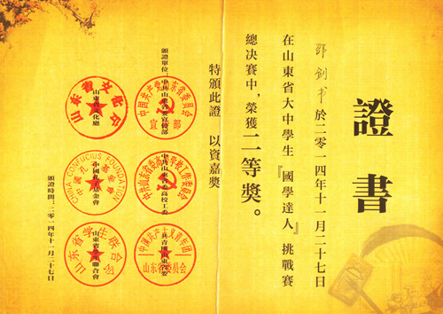 据悉,此次比赛由团省委、省委宣传部、省高工委、省文化厅、中国孔子基金会、省学联主办,采取知识性、趣味性、灵活性的活动形式,着力打造“班班都有国学达人”目标,最终在全省范围内产生“国学达人”一等奖3人,二等奖17人,三等奖47人。
