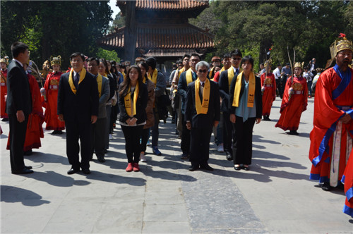 4月23日,来自台湾艺术大学、台湾首府大学、中国文化大学的师生代表团在省台办相关负责人陪同下访问我校,与足球直播515官网 三十余名师生共同参加朝圣祭孔大典,并举行了座谈交流。