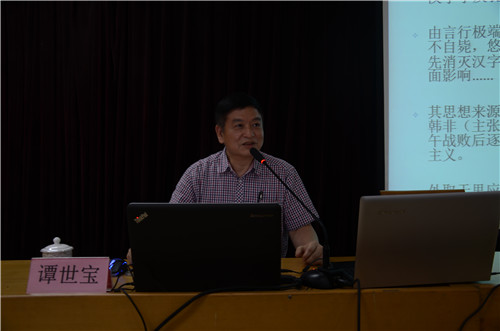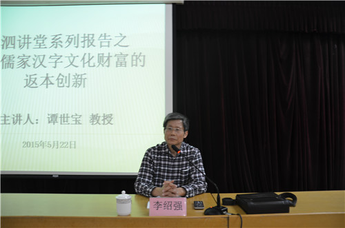5月22晚,洙泗讲堂系列报告会在科技实验大楼二楼南会议室举行。谭世宝教授受邀为同学们作了题为“孔子儒家汉字文化财富的返本创新”的报告,李绍强教授主持了此次报告会。
