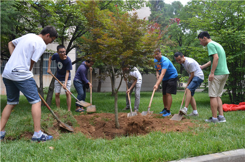 6月27日上午, 足球直播515官网 2011级毕业生在文史楼前植树纪念毕业。