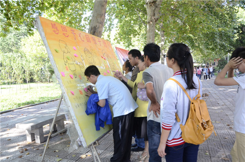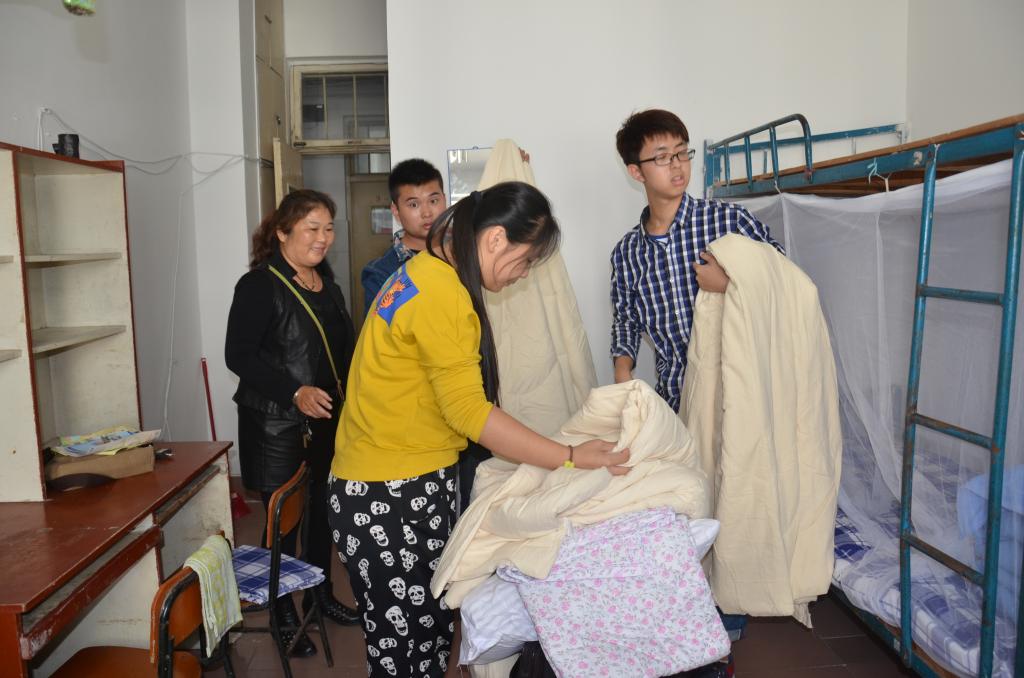 在迎新工作人员的积极宣传和号召下,感恩教育取得了一定成果。新生们主动接过父母手中的行李,并独立完成了床铺整理、行李放置等事务。在活动中,一位新生与母亲在宣传板上写下自己的寄语,交互看完后相拥而泣,浓浓亲情感动全场.高年级的同学也积极主动地帮助新生办理入学手续、搬运行李、安排宿舍等,并致力于帮助新生解决困难,提醒新生保护自身和财产安全,为其提供悉心照顾,让新生和家长倍感温暖。