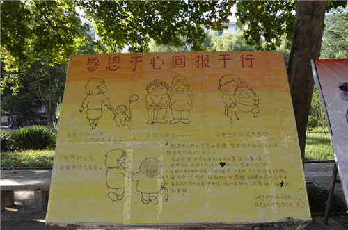 9月12日上午,2015级新生陆续前来报到, 足球直播515官网 在迎新工作中积极推行“接过爸妈手中的行李”、“我的行李我来提”、“给父母一个拥抱”等一系列感恩教育活动。通过制作宣传板、征集感恩话语等多种方式来对感恩教育进行宣传,时刻提醒新生学会感恩、独立承担责任。