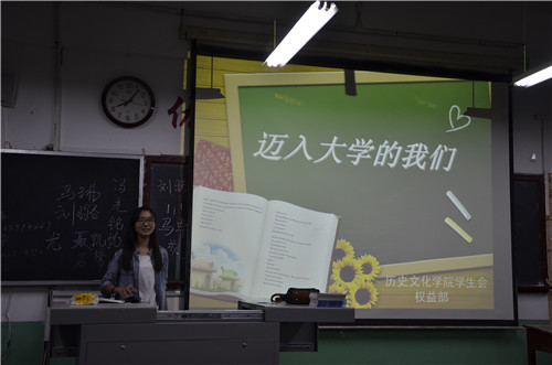 学生会同学分别就纪律文明、宿舍管理制度以及安全问题为新生进行了讲座。向新生详细的介绍了大学安全、纪律、文明以及宿舍打扫的技巧和检查标准,重点强调了在校安全和外出安全等知识,并对新生提出的疑问做出了耐心解答。