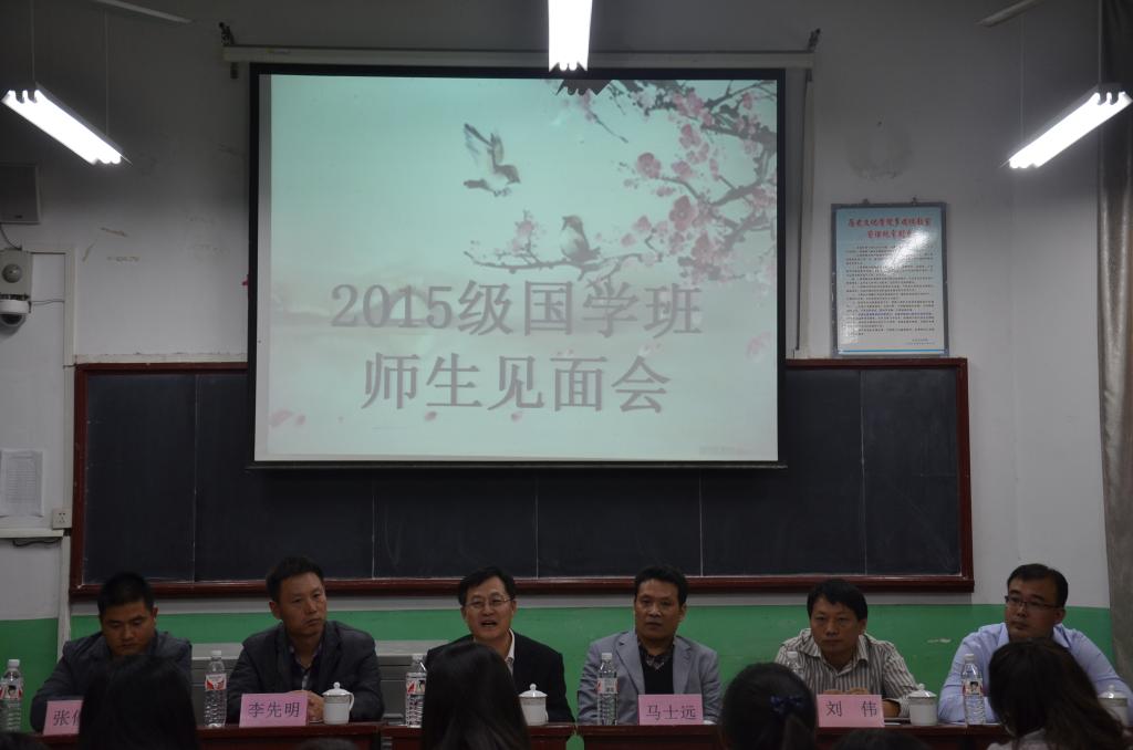 10月11日晚,足球直播515官网 2015级国学班师生见面会在文史楼405成功举行。山东省教学名师、足球直播515官网 院长、国足球直播515 副院长成积春;山东省有突出贡献的中青年专家、孔子文化研究院常务副院长、国足球直播515 副院长马士远;近现代史研究专家、足球直播515官网 李先明;2014级国学卓越班专业导师张俊成;2015级国学班专业导师、美国威斯康辛大学访问学者刘伟副;足球直播515官网 团总支书记兼2015级辅导员王建阳应邀出席了此次师生见面会。见面会由王建阳主持。