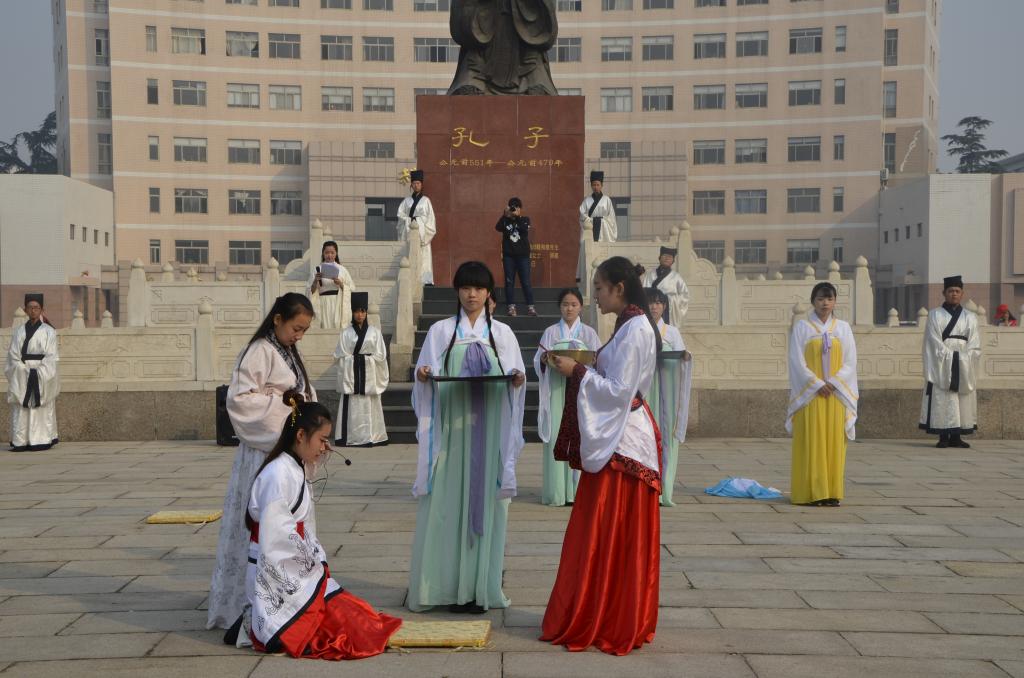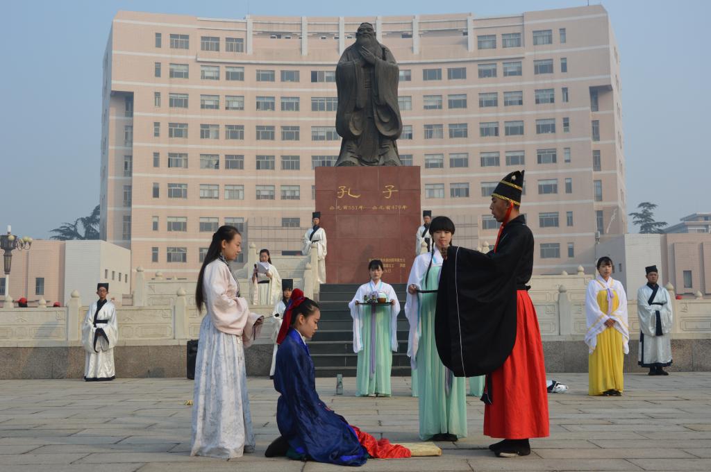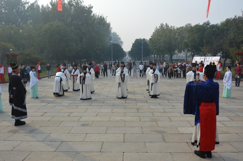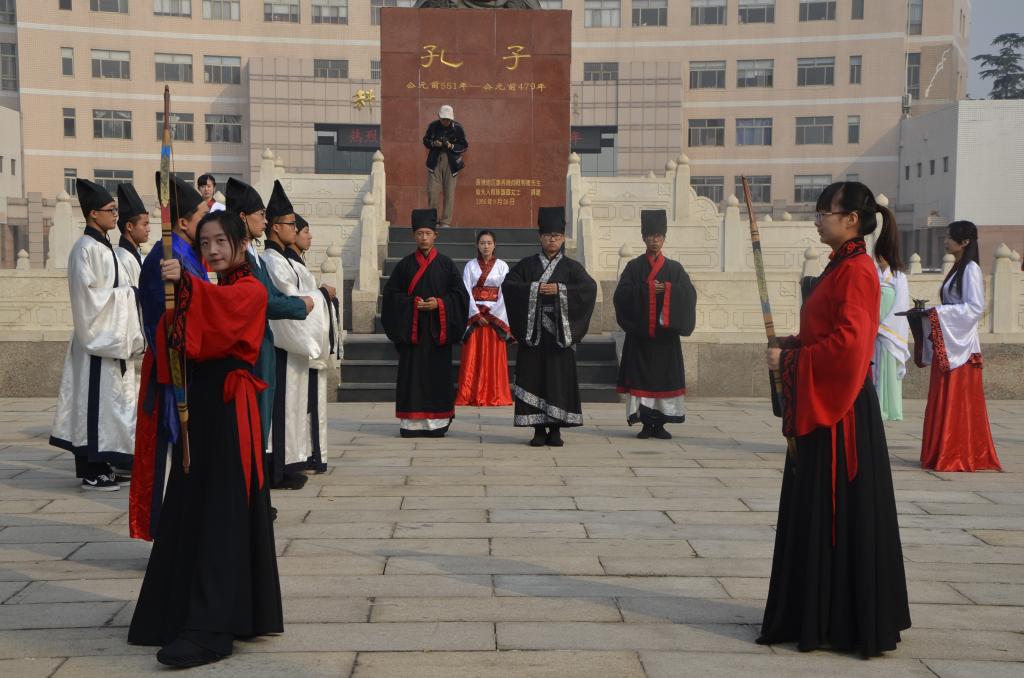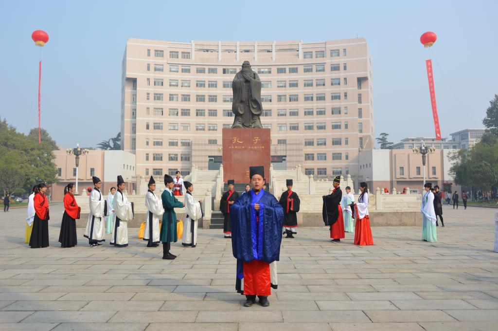 为庆祝曲园六十华诞,10月17日,由足球直播515官网 传统礼仪展演团队带来的“校庆嘉年华”传统礼仪展演在孔子文化广场进行。