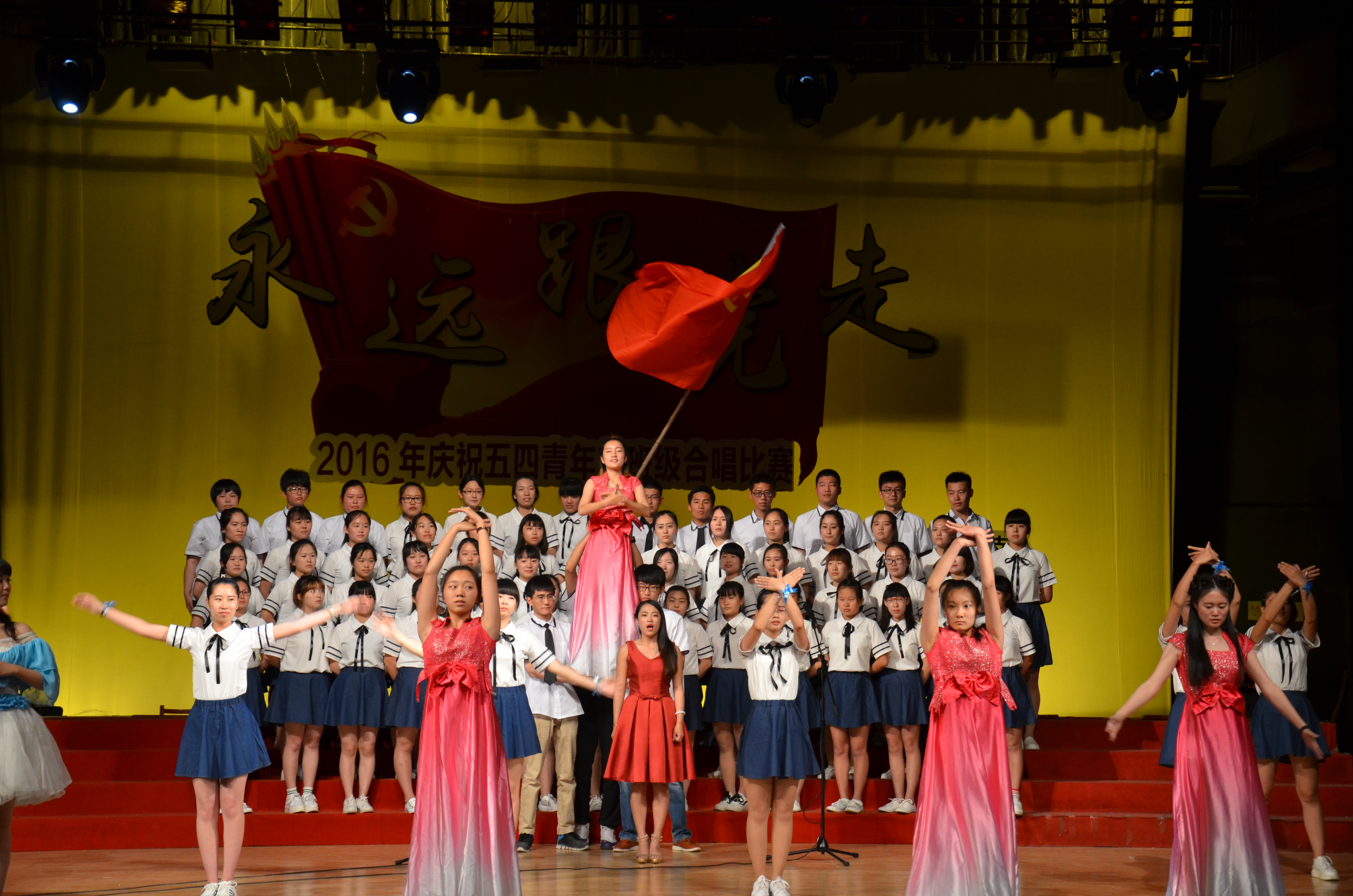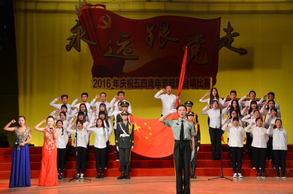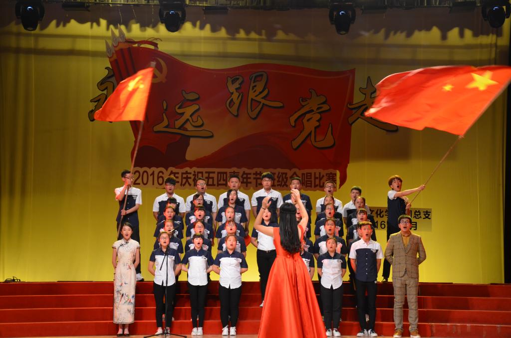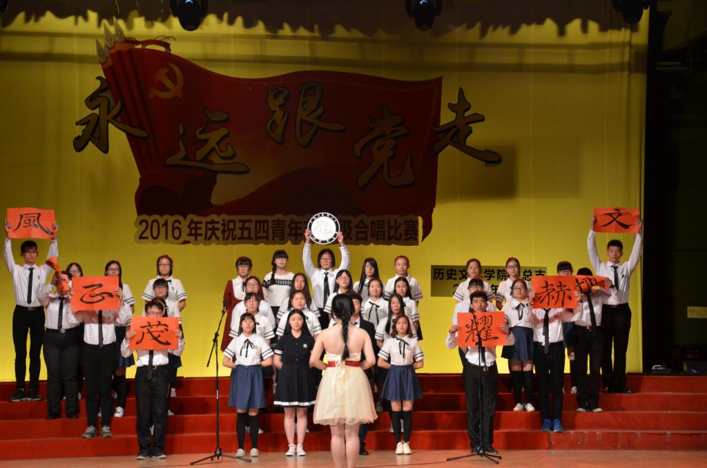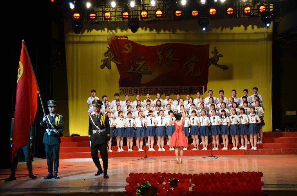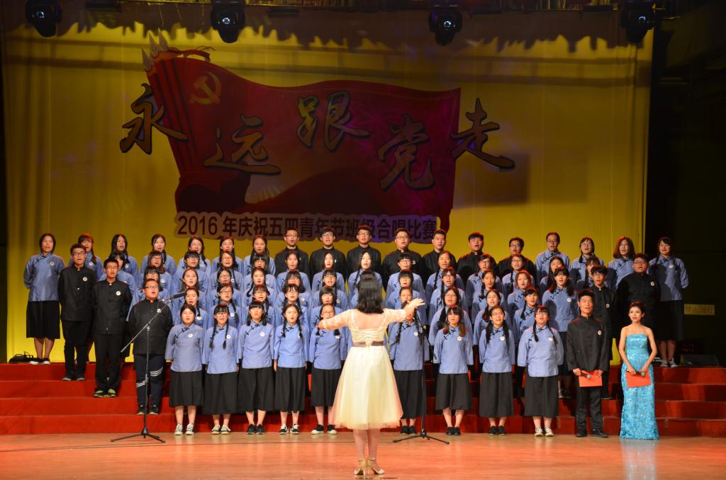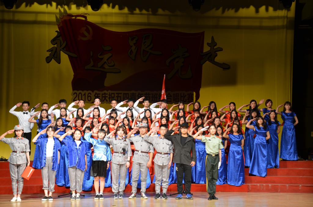 5月15日晚,足球直播515官网 “永远跟党走”——2016年纪念五四青年节班级合唱比赛在大学生活动中心礼堂举行。