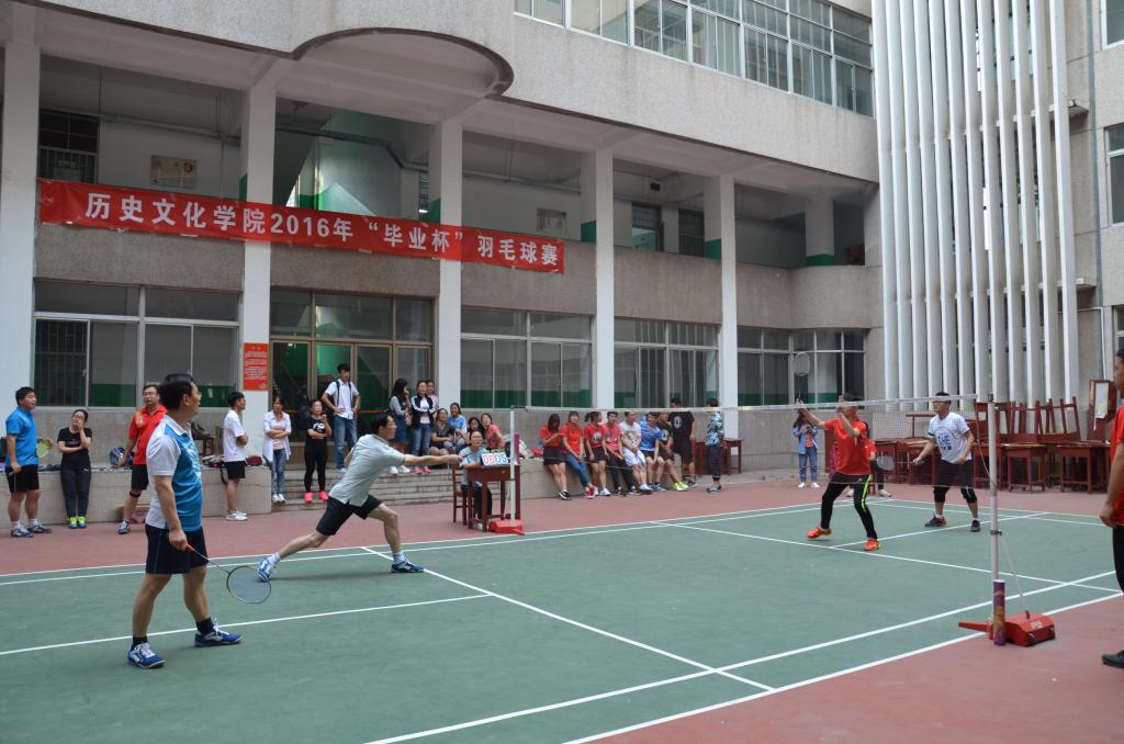 5月13、14日,足球直播515官网 2016年“毕业杯”羽毛球赛在文史楼天井和行政楼后方羽毛球场地举行。